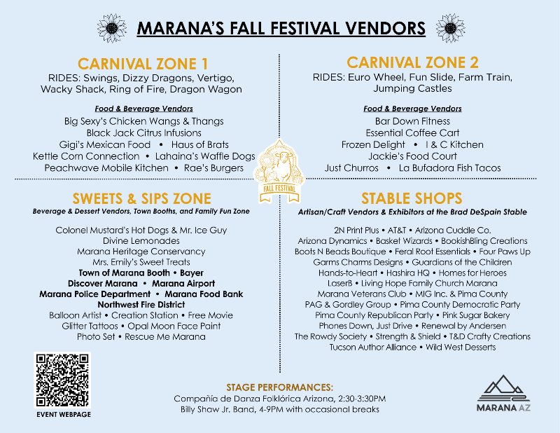 Bring one can of food or one non-perishable food item to donate at the Marana Food Bank’s tent located in the front entrance zone of the event!